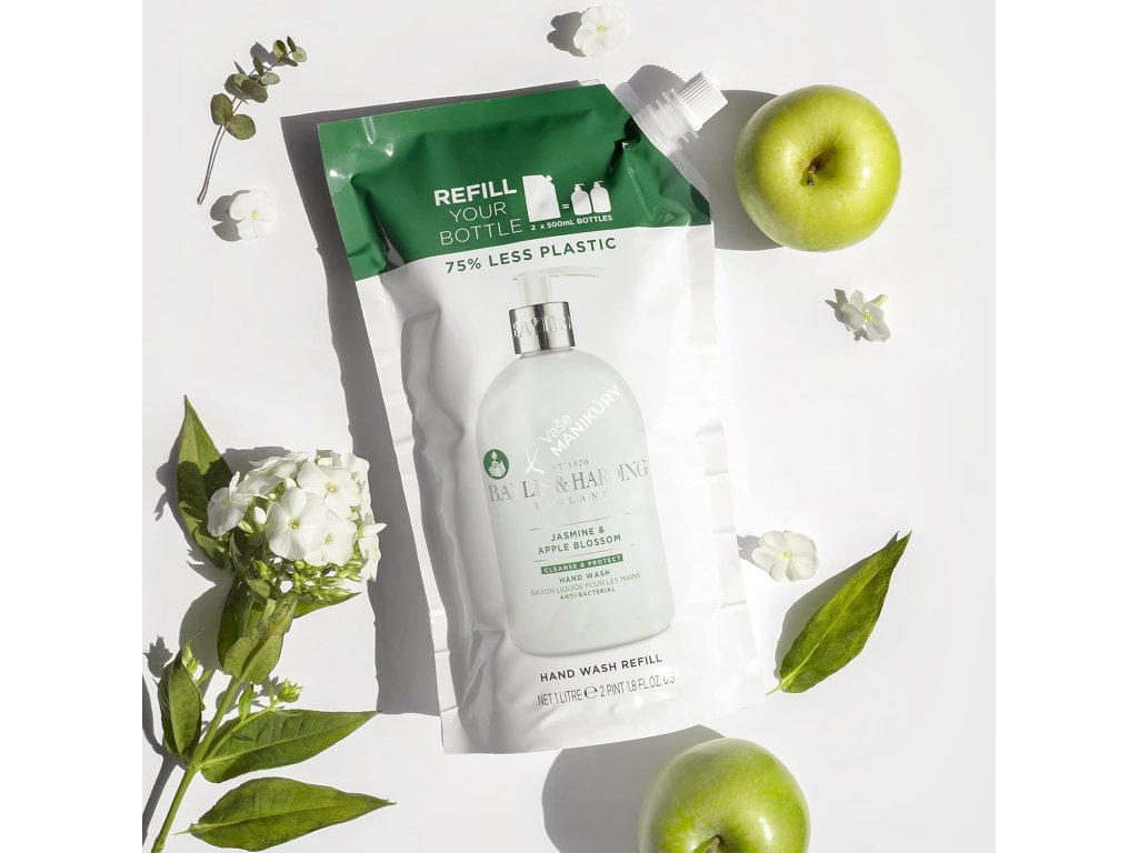 BAYLIS & HARDING Náhradná náplň tekutého mydla 1 l Jazmín & Jabloňový kvet Náhradní náplň tekuté mýdlo na ruce, 1000 ml