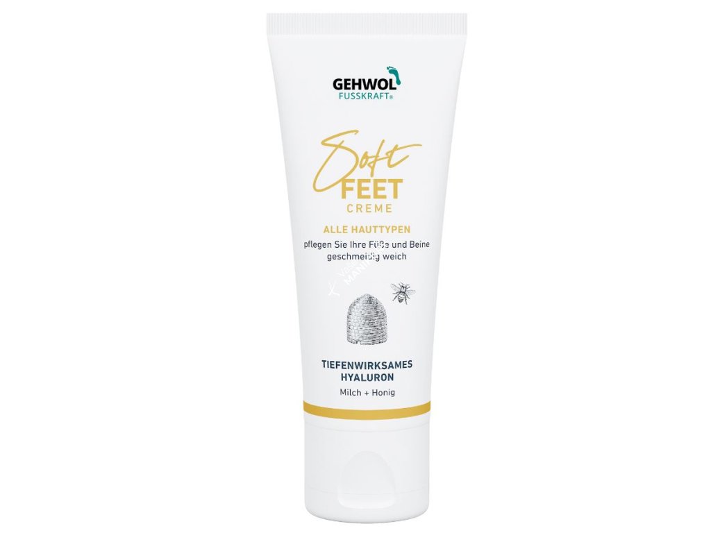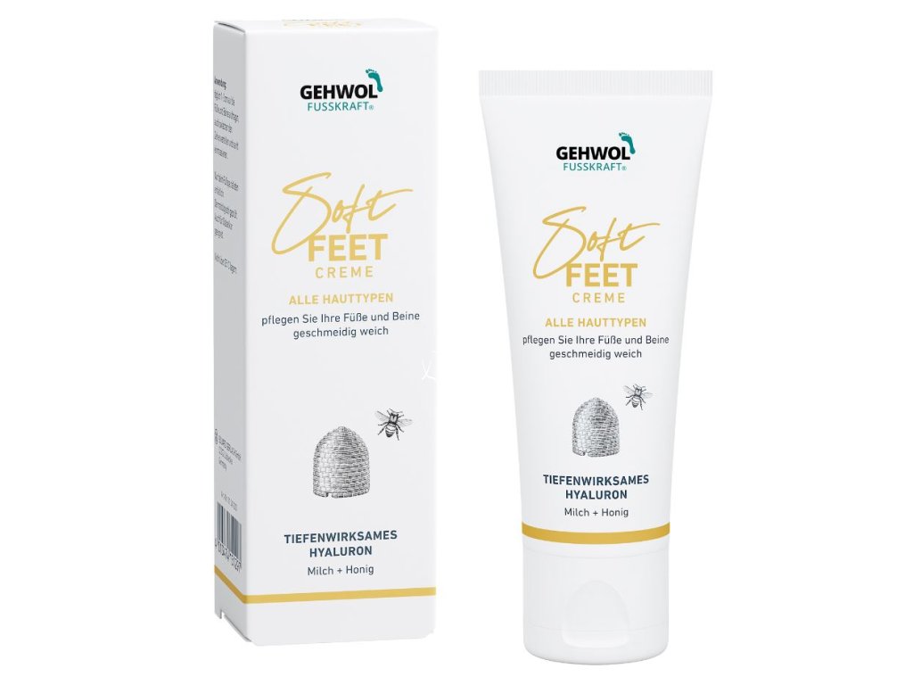 Gehwol Fusskraft Soft Feet Creme – regeneračný a hydratačný krém s mliekom a medom, obohatený o hĺbkovo pôsobiacu kyselinu hyalurónovú pre intenzívnu starostlivosť a obnovu pokožky.