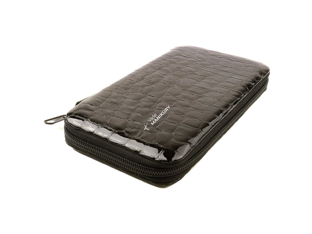 Táto bohato vybavená sada na manikúru a pedikúru bude vašim skvelým pomocníkom pri domácej starostlivosti. Všetky nástroje sú prehľadne uložené v elegantnom puzdre. Krásne puzdro na zips je vyrobené z pravej kože v čiernej farbe a je upravené do vzhľadu krokodílej kože
