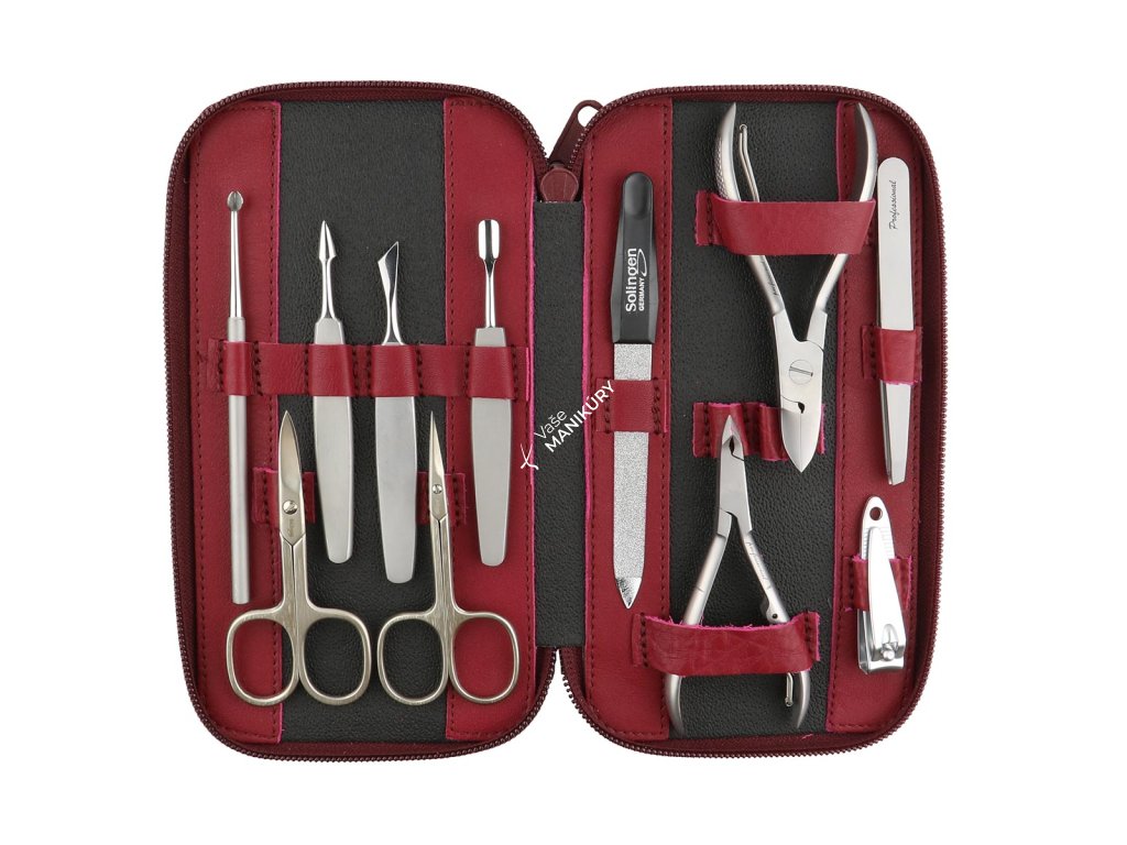 Krásna sada na manikúru v luxusnom koženom puzdre s nožnicami a pilníkom Solingen.