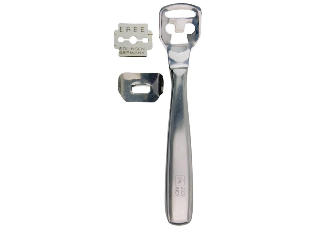 - Erbe Solingen Orezávač zrohovatenej kože (nerezový) - Vysoko kvalitný orezávač z nerezovej ocele, ideálny pre odstránenie odolnej a silno zrohovatenej kože. Sterilizovateľný, čo z neho robí skvelú voľbu ako pre domáce použitie, tak aj pre profesionálne salóny.
