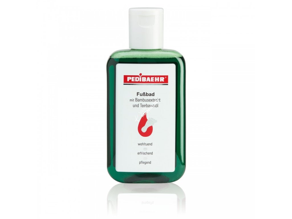 - Pedibaehr Kúpeľ na nohy s bambusom a čajovníkom (200 ml) - Osviežujúci kúpeľ s bambusovým extraktom a čajovníkovým olejom pre upokojenie podráždenej pokožky. Obsahuje panthenol pre hydratáciu a jemnú starostlivosť o nohy s citrusovou vôňou, ktorá prináša osvieženie.