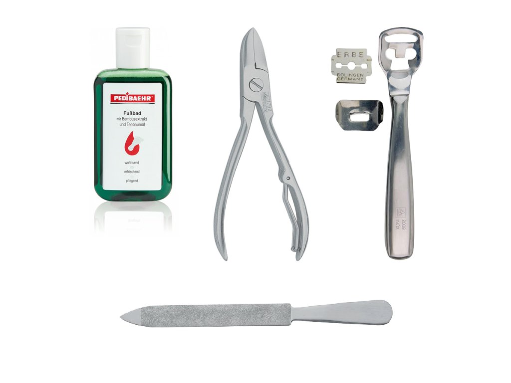 Prémiový vianočný balíček s nástrojmi Erbe Solingen a osviežujúcim kúpeľom Pedibaehr pre starostlivosť o nechty.
