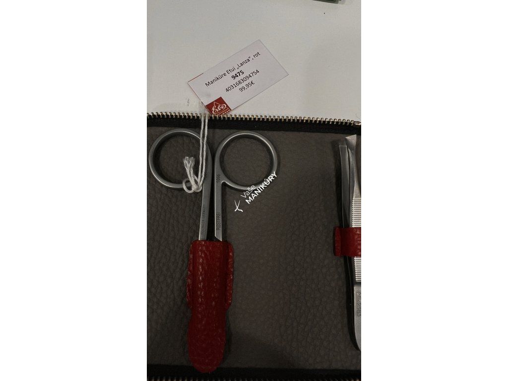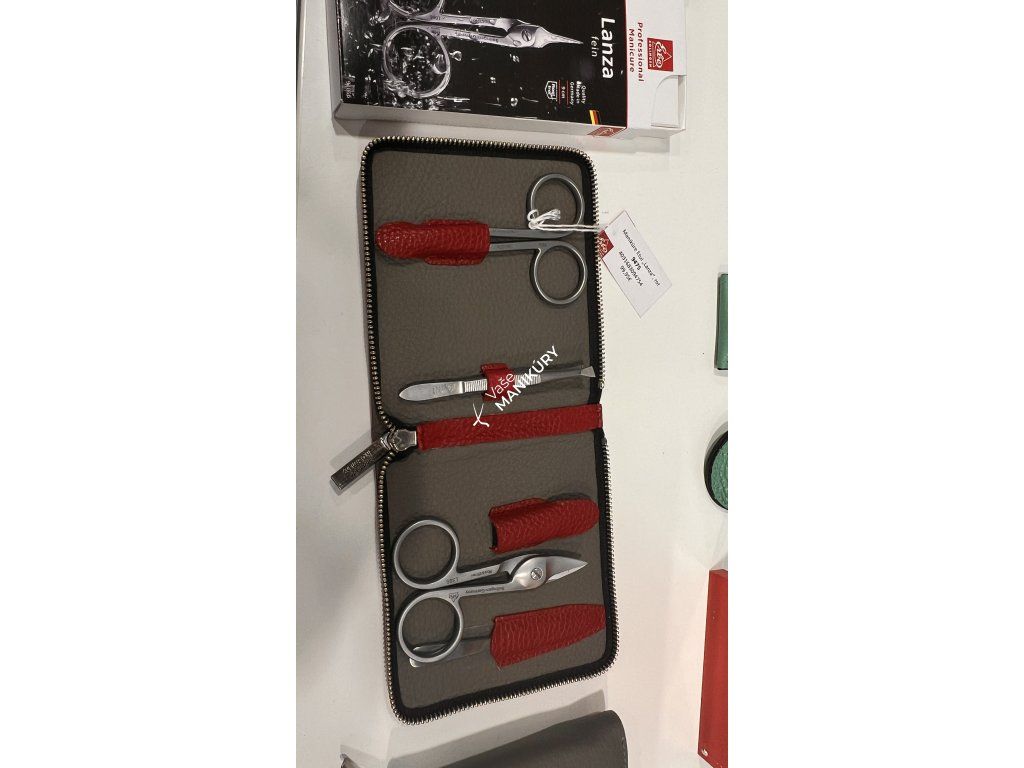 Luxusná kožená manikúra s výnimočnými nožnicami Lanza a pečaťou Made in Solingen pre dokonalú úpravu nechtov.