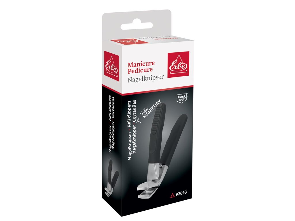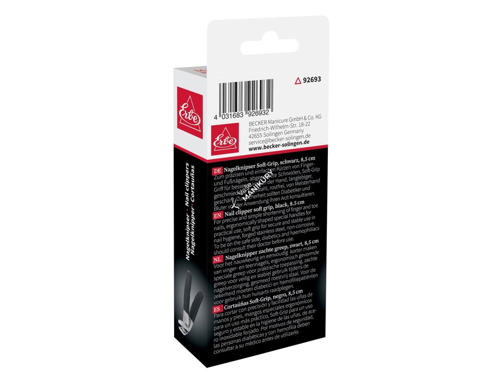 Nerezové klieštiky na nechty Erbe Solingen s mäkkým protišmykovým úchopom v elegantnej čiernej farbe.