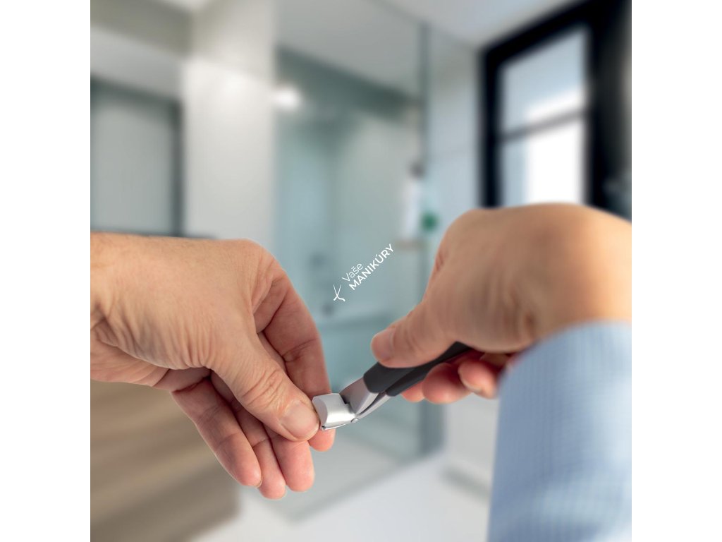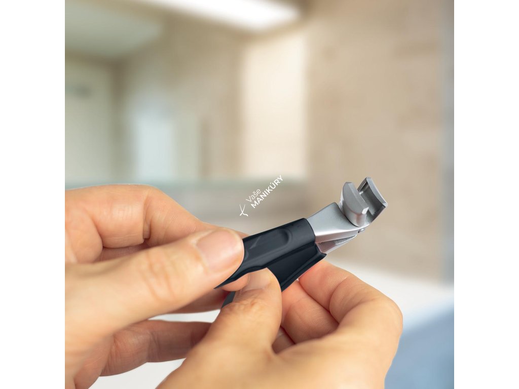 Ergonomická rukoväť s protišmykovým Soft Grip povrchom poskytuje istotu a pohodlie pri každom použití. Unikátna konštrukcia navyše umožňuje strihanie ako v klasickej, tak aj v obrátenej polohe, čo uľahčuje dosiahnutie všetkých okrajov nechtov v prirodzenej a komfortnej pozícii. Horné aj spodné britvy sú rovnako ostré a precízne brúsené pre perfektný výsledok pri každom strihu. Vďaka integrovanému zachytávaču zostáva vaše okolie čisté bez neporiadku. Prehĺbeniny na bokoch rezných hrán zachytávajú odstrihnuté zvyšky nechtov. Otvorený zastrihávač možno vyprázdniť jednoduchým vyklopením.