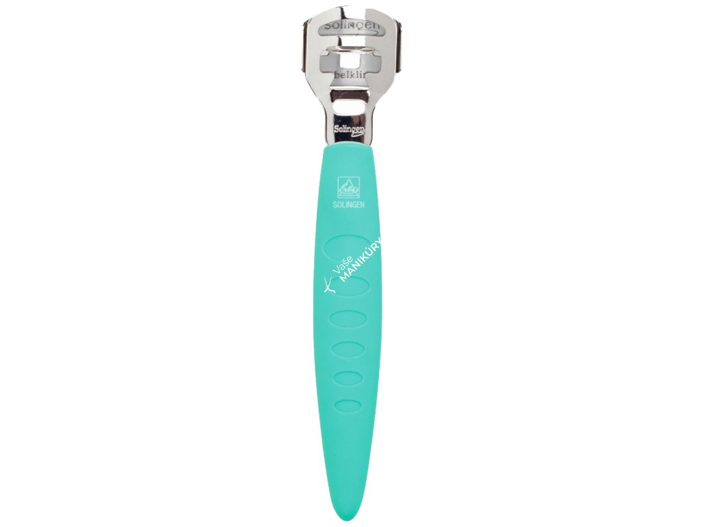 Ergonomický orezávač zrohovatenej kože nemeckej značky Erbe Solingen v pastelovo zelenej farbe s ostrou čepeľou Solingen.