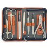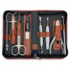 Bohato vybavená 8dielna manikúrová sada s kvalitnými nožnicami a pilníkom Solingen v hnedom puzdre na zips z prírodnej hovädzej kože.