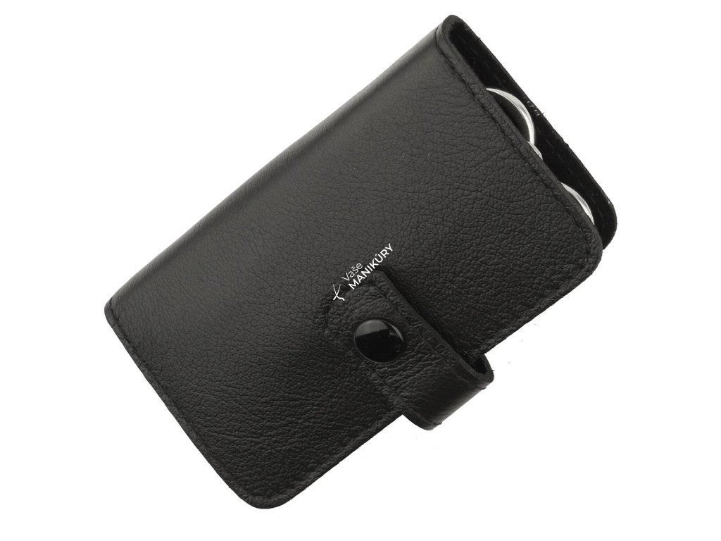 Cestovná manikúra v čiernom koženom puzdre s dvoma nožnicami a pilníkom Solingen.