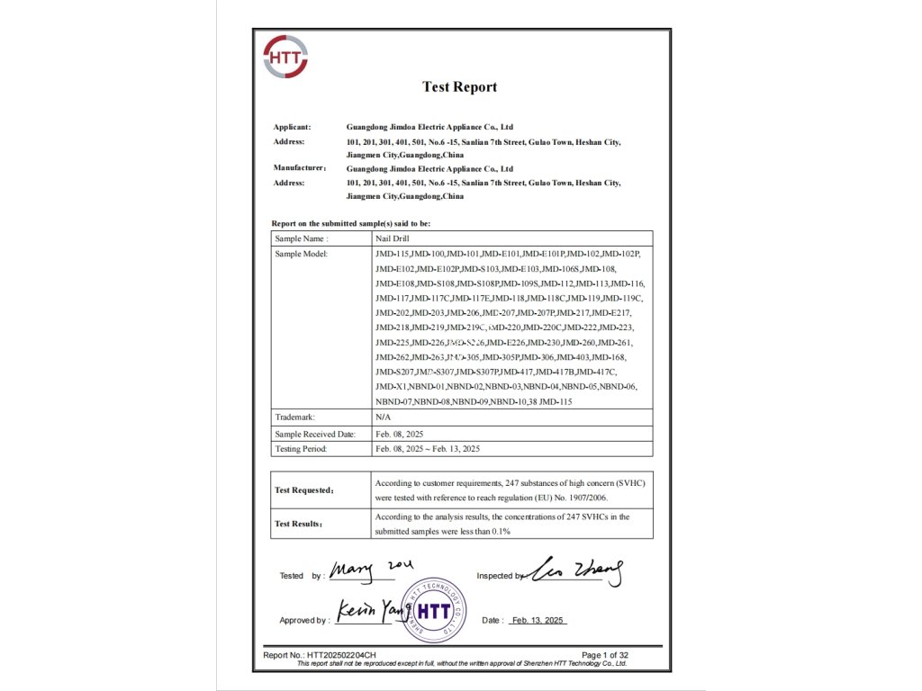 Výrobky spoločnosti sa predávajú pod značkou JIMDOA a sú to najmä elektrické brúsky a LED UV lampy alebo sterilizátory na starostlivosť o nechty a zdobenie, ako aj doplnkový sortiment výrobkov na starostlivosť o nechty na rukách a nohách s optimálnym výkonom a veľmi atraktívnym dizajnom.