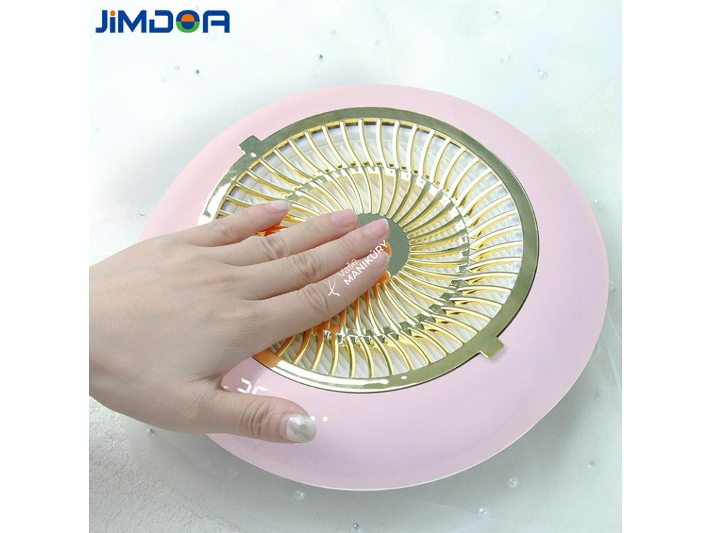 Multifunkčná guľatá odsávačka prachu a brúska na nechty 2v1 JMD-803PRO v ružovej farbe.