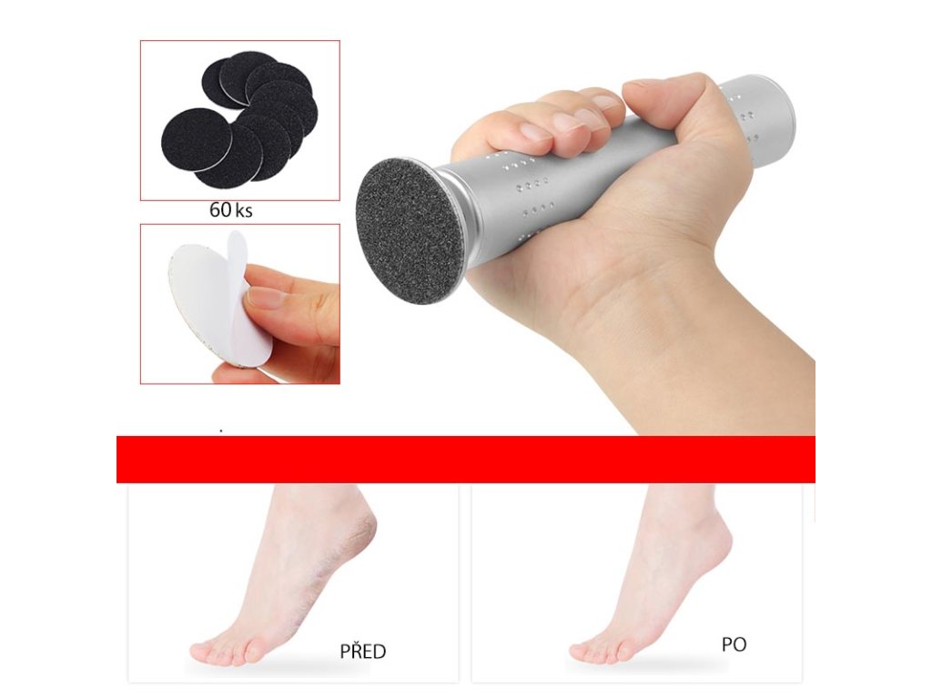 - balenie obsahuje: 1 x elektrický pilník na nohy, 1 x napájací zdroj, 60 ks brúsnych kotúčov, 1 x návod na použitie