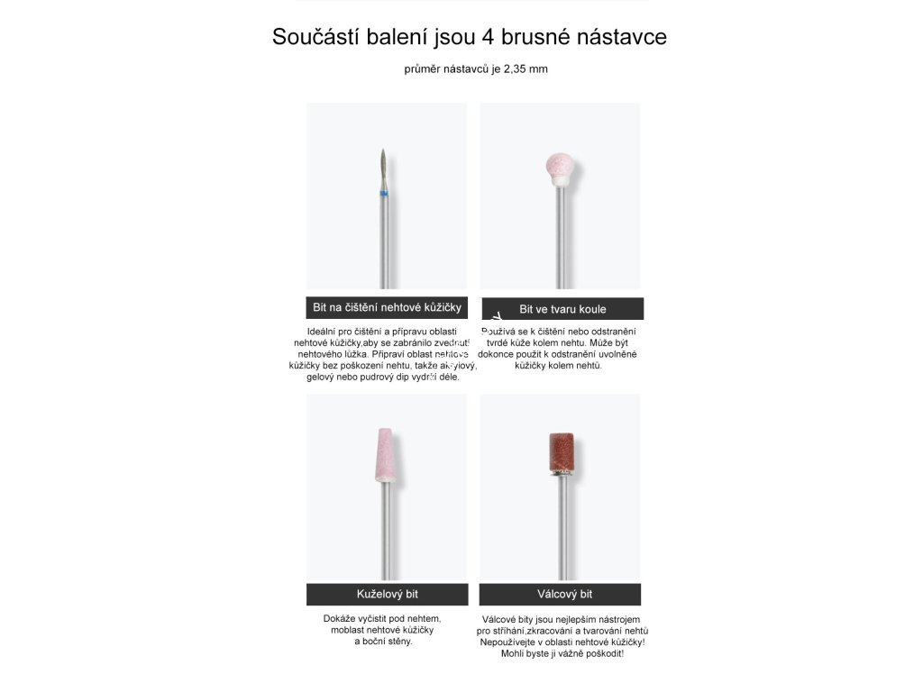 - multifunkčné použitie vďaka vymeniteľným brúsnym hrotom (vhodné na brúsenie a leštenie)