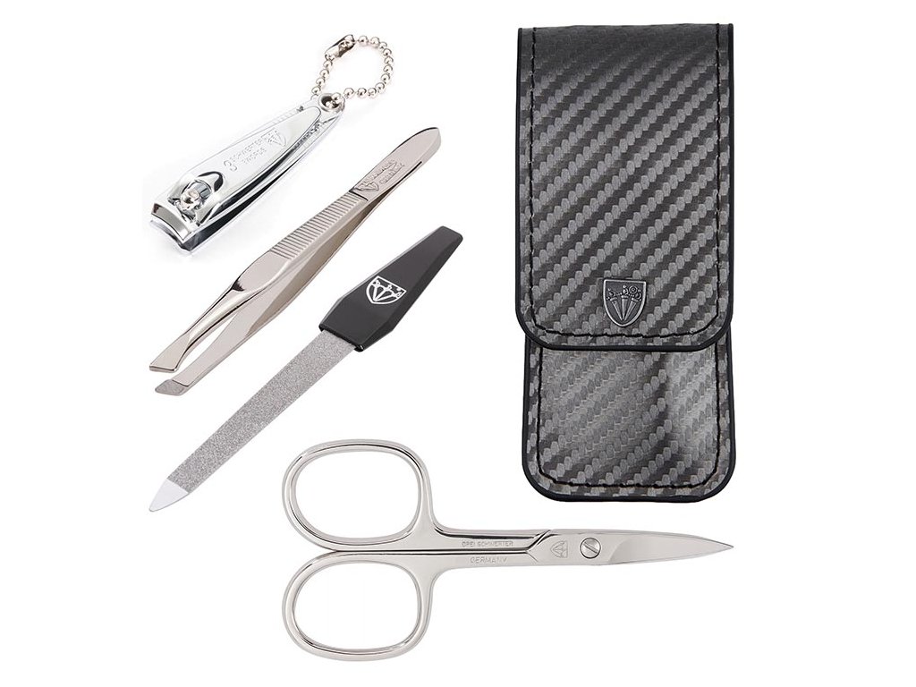 Veľmi pekné šedé puzdro na manikúru so zapínaním na patent je vyrobené zo syntetickej kože. Manikúra je vybavená nástrojmi prémiovej rady nemeckého výrobcu Kellermann. Nástroje zo špeciálne kalenej ocele zaručujú dlhoročnú životnosť a spĺňajú aj veľmi náročné požiadavky.