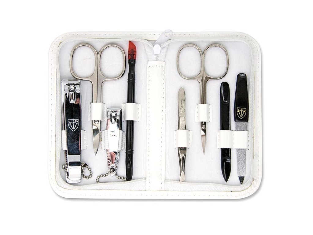 Manikúra je vybavená nástrojmi z kvalitnej poniklovanej ocele od nemeckého výrobcu Kellermann. Nástroje sú uložené v bielom puzdre zo syntetickej kože so zatváraním na zips. Čierne nástroje s bielym puzdrom vytvárajú efektívny farebný kontrast.