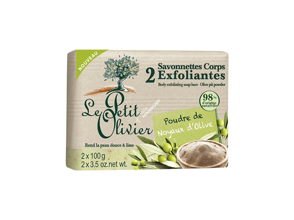 Extra jemné peelingové mydlo francúzskej značky Le Petit Olivier s delikátnou vôňou olivového mlieka.