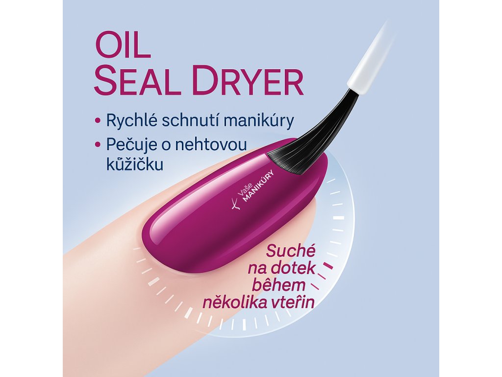 - urýchľuje schnutie laku – suché nechty počas niekoľkých sekúnd