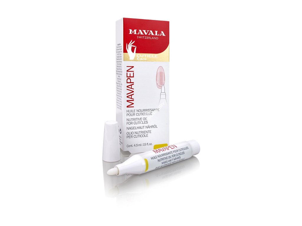 MAVALA MavaPen je cielená výživa pre nechtovú kožtičku vo forme praktického pera. Tento praktický vitamínový olejový prípravok v tvare fixky umožňuje presnú aplikáciu priamo na kontúru nechtu. Už jediná aplikácia zanechá na pokožke pár kvapiek výživného a zvláčňujúceho olejíčka, ktorý ju okamžite zjemní a intenzívne vyživí.
