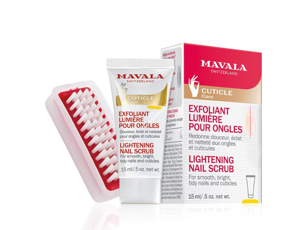 Mavala Lightening Scrub Mask jemne odstraňuje odumreté bunky, zjemňuje kožtičku a rozjasňuje nechty.