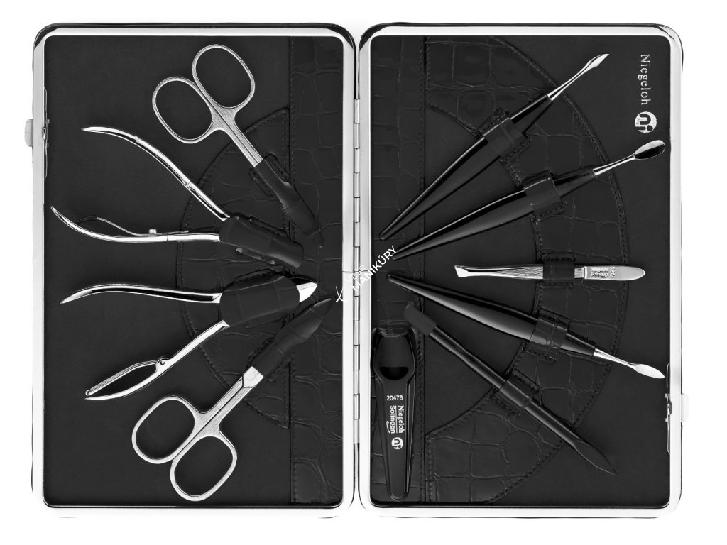 NIEGELOH SOLINGEN Dámska kožená sada na manikúru 82670 KROKO XL čierna