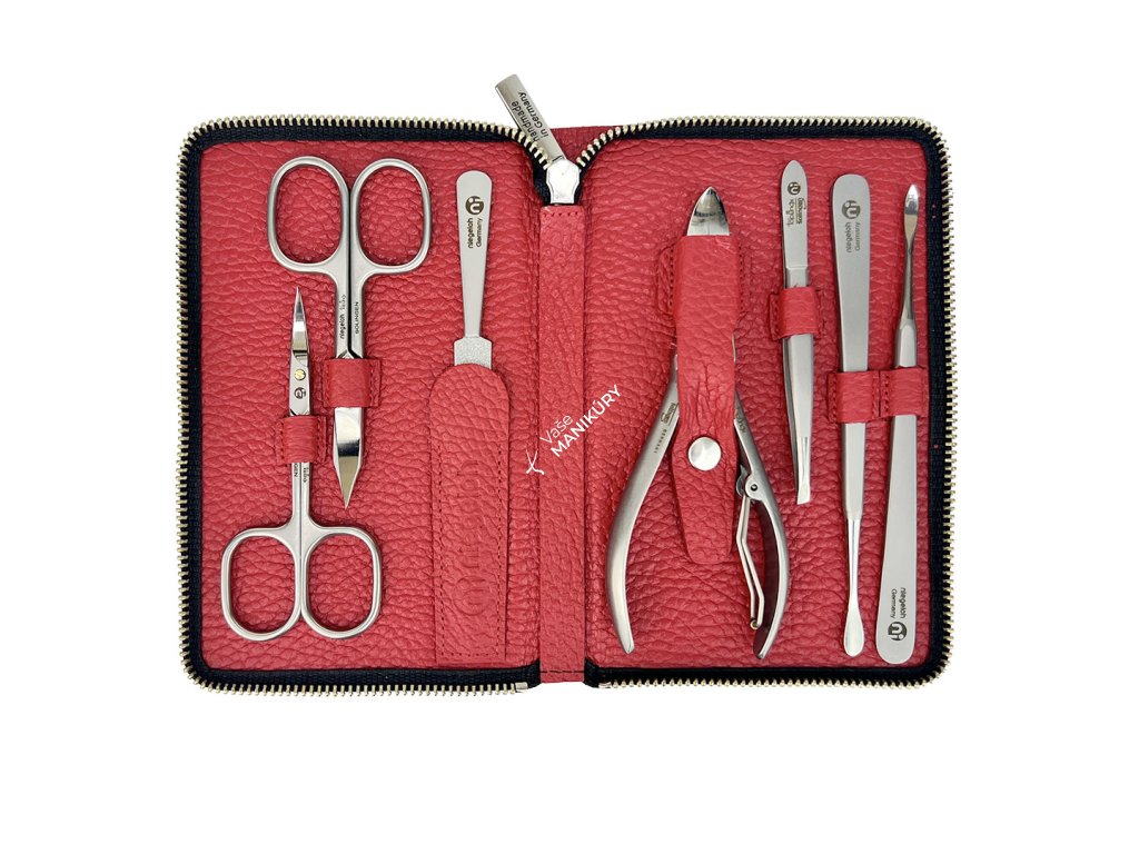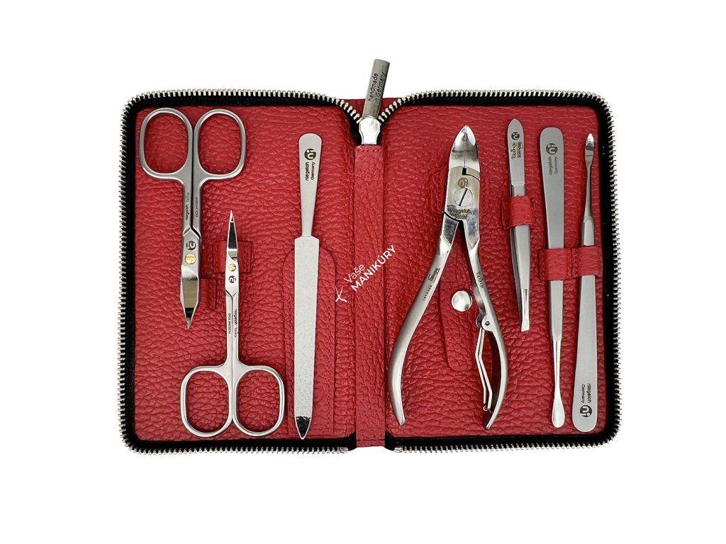 Kolekcia luxusných manikúr Niegeloh je určená všetkým, ktorí od svojej manikúrnej sady očakávajú len tú najvyššiu kvalitu. Táto veľmi dobre vybavená sada kombinuje luxus mäkkého červeného koženého puzdra s praktickosťou pohodlného zapínania na zips. Puzdro je vyrobené z prírodnej hovädzej kože, ktorá je mimoriadne jemná a príjemná na dotyk. Aj vnútorná strana je zhotovená z prvotriednej pravej kože.