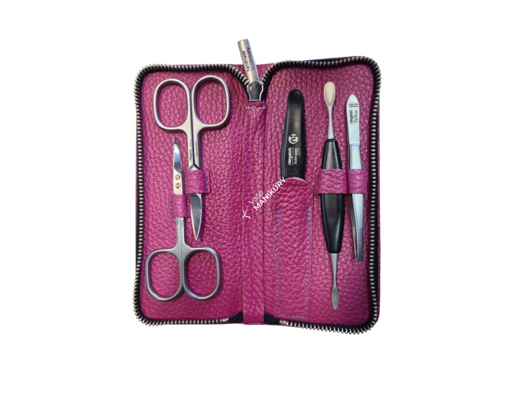 Prémiové manikúrové nástroje Made in Solingen, spĺňajúce aj veľmi náročné požiadavky, v kombinácii s nadčasovým elegantným dizajnom koženého puzdra robia z tejto manikúry hodnotný darček – praktický a zároveň krásny.