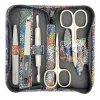 Dámska 5-dielna súprava na manikúru s kvalitnými nástrojmi v puzdre z pravej kože s motívmi kvetov.
