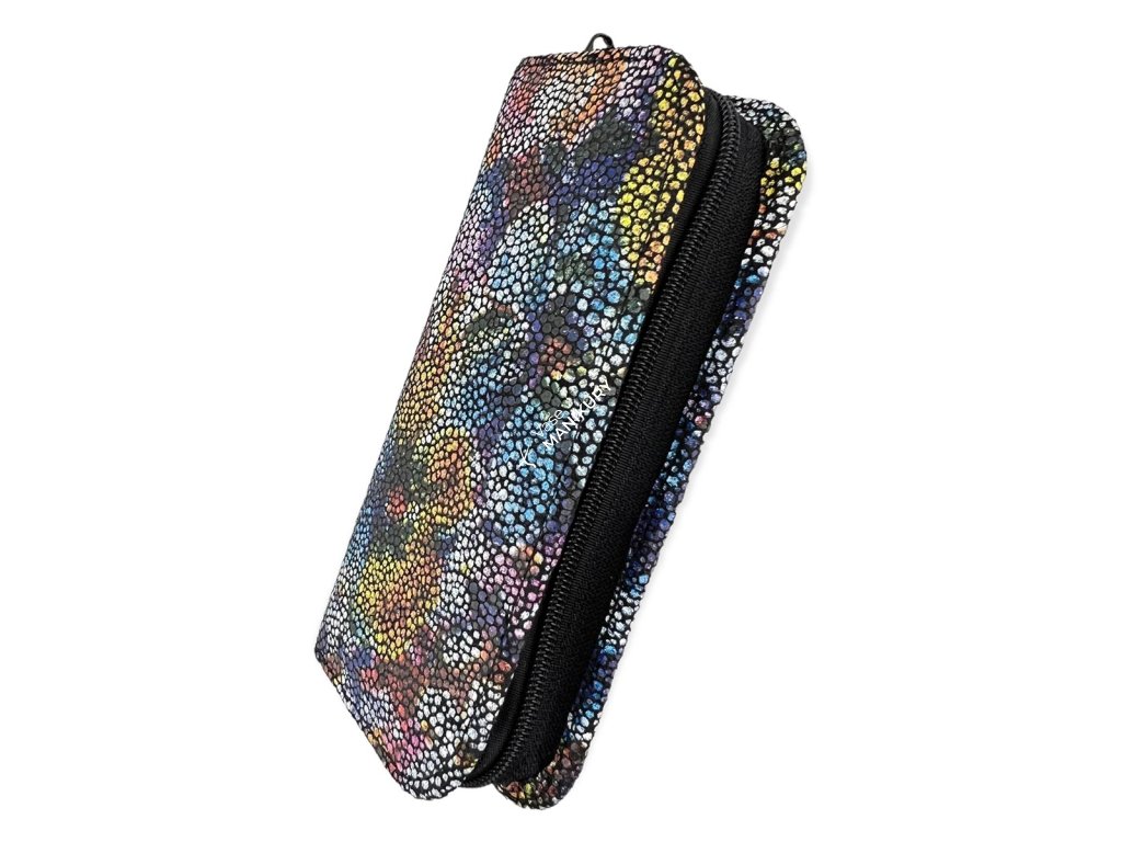 Dámska 5-dielna súprava na manikúru s kvalitnými nástrojmi v puzdre z pravej kože s motívmi kvetov.