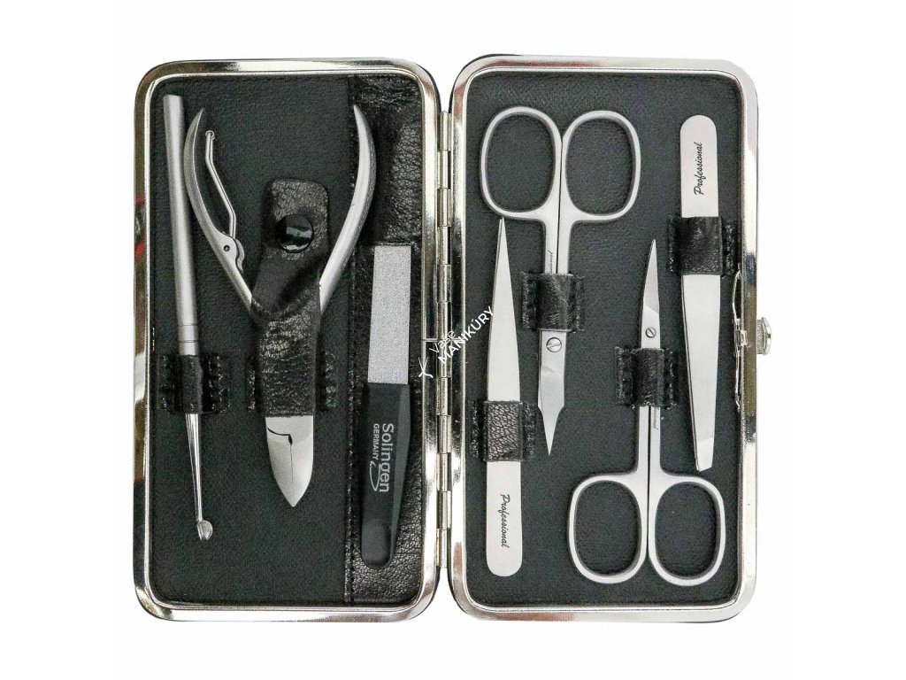 Nádherná luxusne vyzerajúca sada na manikúru v čiernom koženom puzdre a kvalitnými nástrojmi.