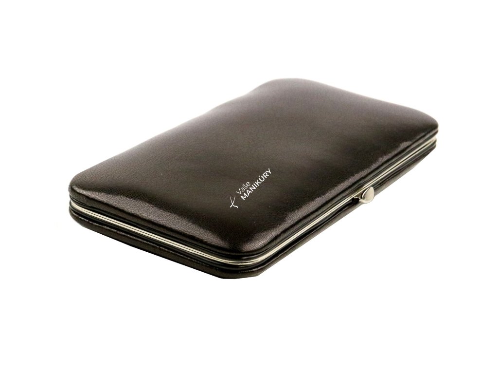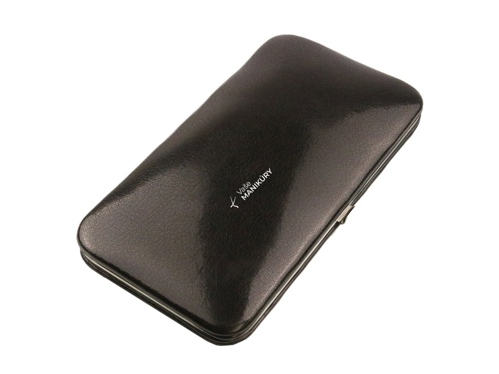 Nádherná luxusne vyzerajúca sada na manikúru v čiernom koženom puzdre a kvalitnými nástrojmi.