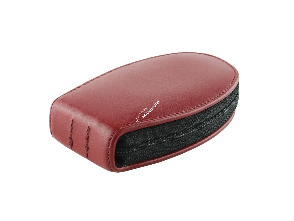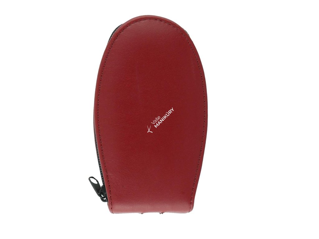 Malá červená manikúra pre ženy z pravej kože s nerezovými nástrojmi. Ideálna do kabelky a pre cestovanie.