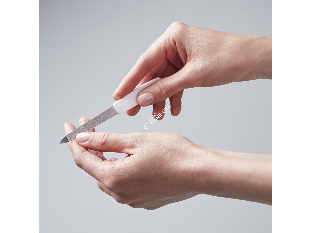 Nerezový zafírový pilník Zwilling zo série Classic Inox je spoľahlivým a všestranným nástrojom pre každodennú starostlivosť o ruky a nechty. Ergonomicky tvarovaná biela plastová rukoväť pilníka pohodlne padne do ruky a umožňuje presné ovládanie pri úprave nechtov.