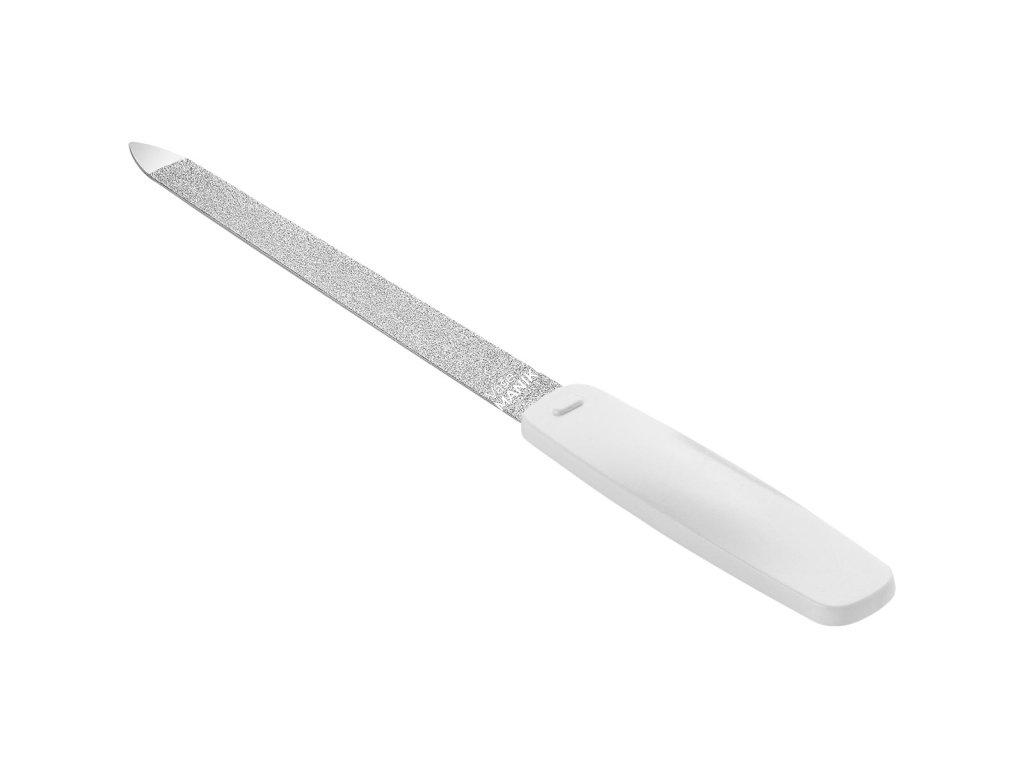 Nerezový zafírový pilník Zwilling zo série Classic Inox je spoľahlivým a všestranným nástrojom pre každodennú starostlivosť o ruky a nechty. Ergonomicky tvarovaná biela plastová rukoväť pilníka pohodlne padne do ruky a umožňuje presné ovládanie pri úprave nechtov.