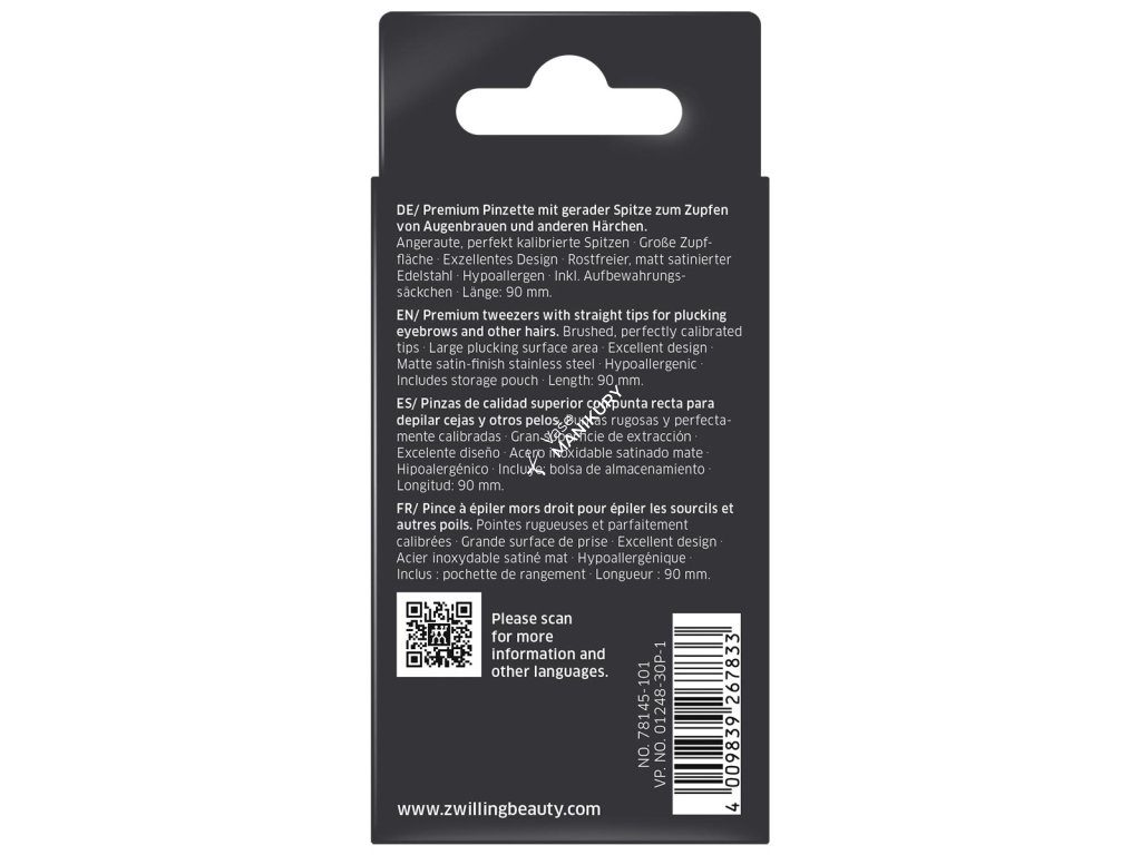 Prémiová pinzeta ZWILLING TWINOX s rovnými čeľusťami, širokou uchopovacou plochou a presne kalibrovanými špičkami je ideálna na tvarovanie obočia a šetrné odstraňovanie aj tých najjemnejších chĺpkov na tvári. Vďaka tenkej a jemne brúsené prednej časti umožňuje presné uchopenie bez poškodenia pokožky.