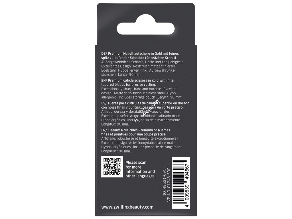 Nožnice na kožtičku zo série ZWILLING Premium Gold sú ideálnym nástrojom pre presné a bezpečné odstraňovanie odumretej kože a záderov v okolí nechtového lôžka.