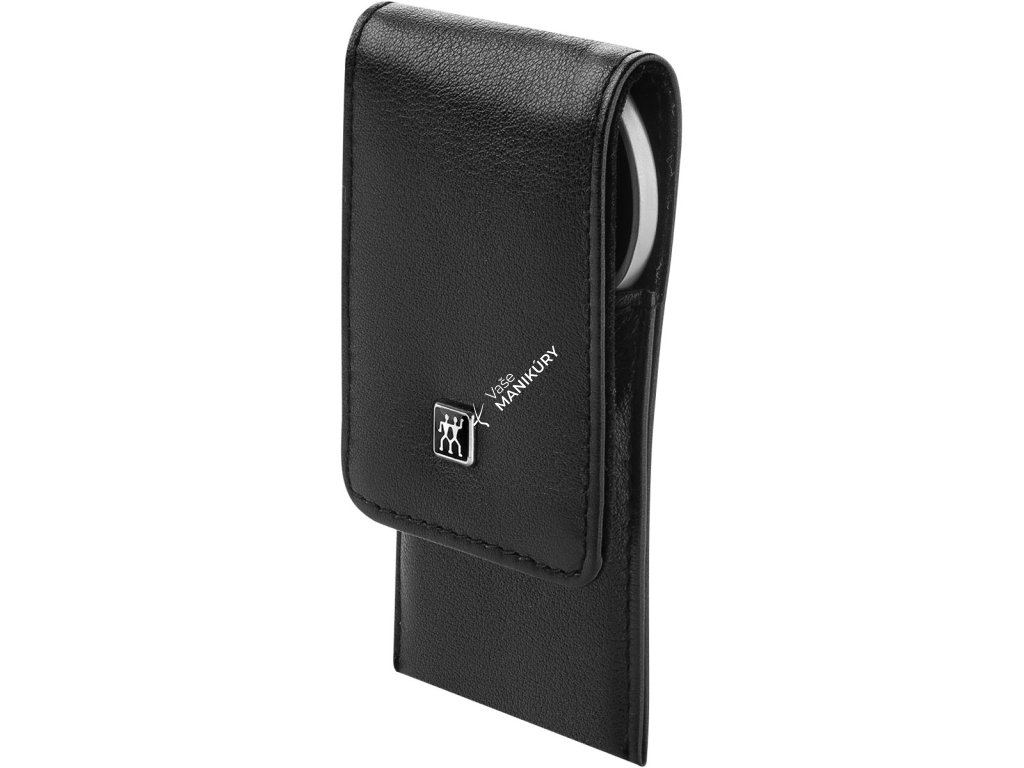 Manikúrové nástroje sú uložené v elegantnom puzdre z jemnej čiernej nappa kože so zapínaním na patent. Látka na vnútornej strane puzdra má na povrchu zamatovú a jemnú úpravu.