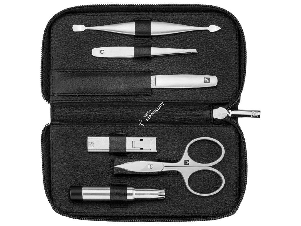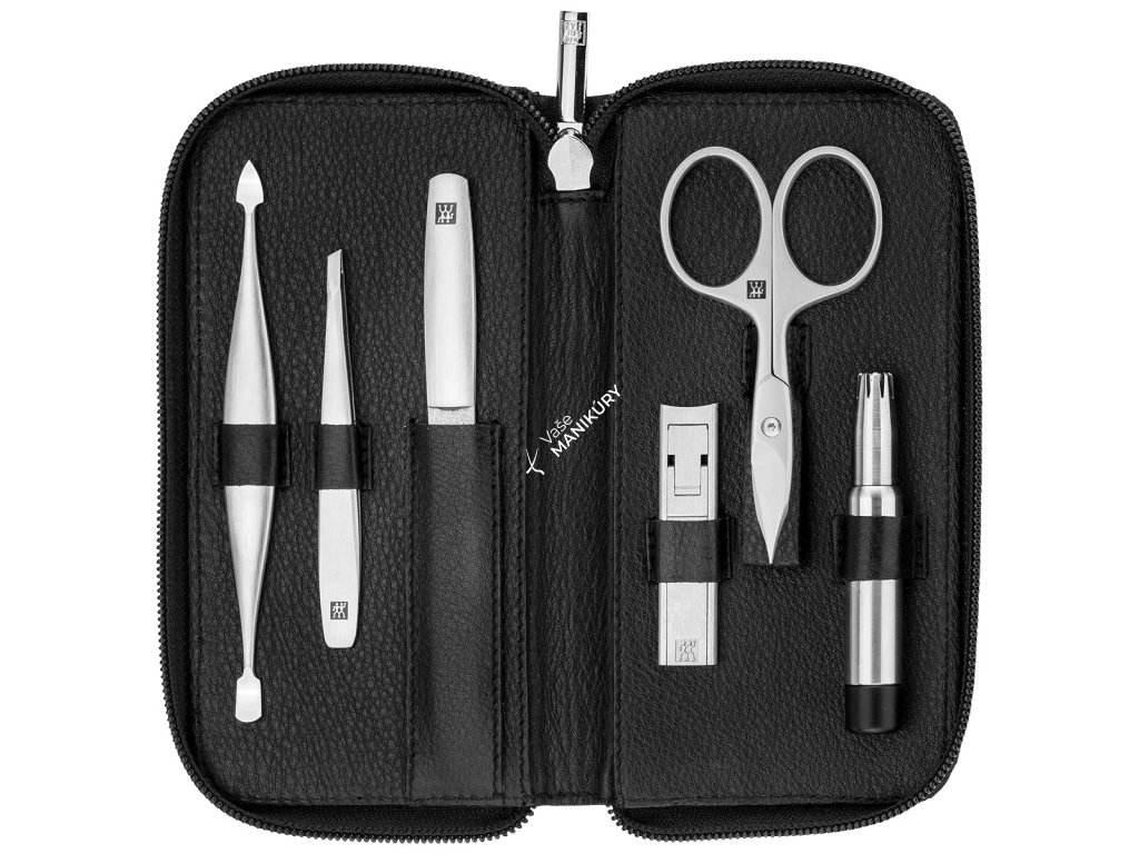 Luxusná pánska 6-dielna súprava ZWILLING v koženom puzdre s prémiovými nerezovými nástrojmi vrátane zastrihávača chĺpkov.