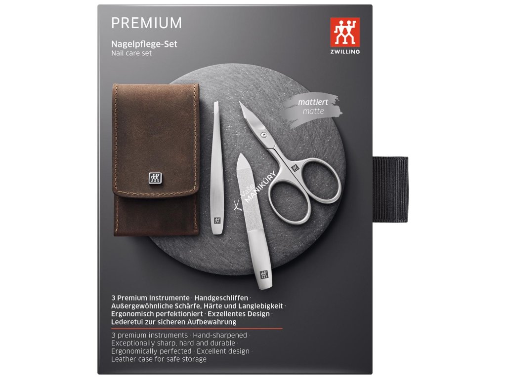 Trojdielna manikúrna sada z kolekcie MOUNTAIN TWINOX od nemeckej značky ZWILLING spája špičkovú kvalitu, luxusný dizajn a praktickosť. Elegantná sada obsahuje tri najčastejšie používané nástroje na starostlivosť o nechty a je ideálna na každodenné použitie. Táto manikúra je veľmi praktická pri cestovaní. Vďaka svojim menším rozmerom sa pohodlne zmestí do každého batožiny či kozmetickej taštičky.
