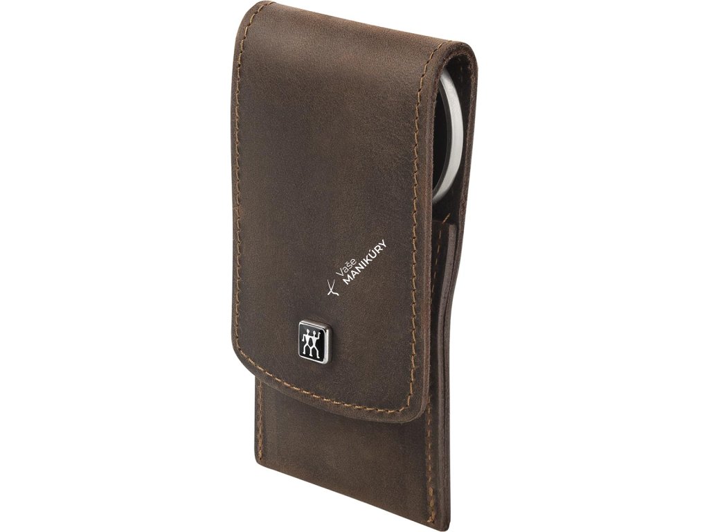 Manikúrové nástroje sú uložené v štýlovom puzdre, ktoré je ako stvorené pre mužov. Puzdro manikúry so zapínaním na patent je vyrobené z kvalitnej hovädzej kože so špeciálnou úpravou pre zvýšenú odolnosť voči vode. Sýto hnedé prevedenie s ozdobným prešívaním a semišovo hebkým povrchom je nielen vizuálne atraktívne, ale aj veľmi príjemné na dotyk.