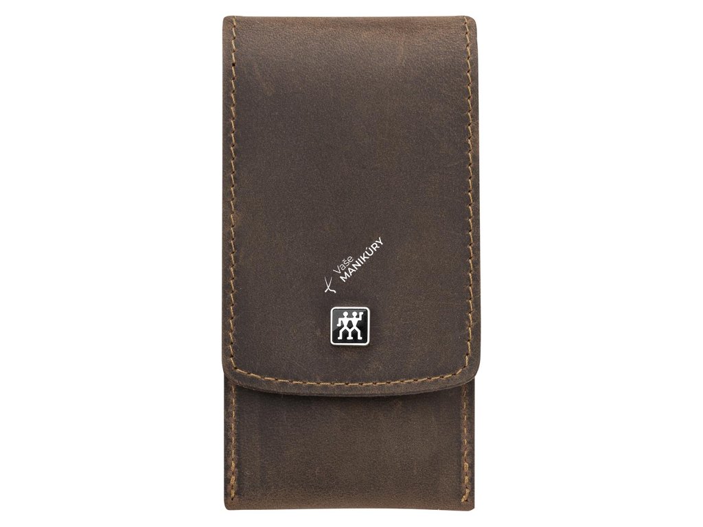 Luxusná pánska cestovná 3-dielna sada ZWILLING s prémiovými nástrojmi z nehrdzavejúcej ocele v atraktívnom hnedom koženom puzdre.