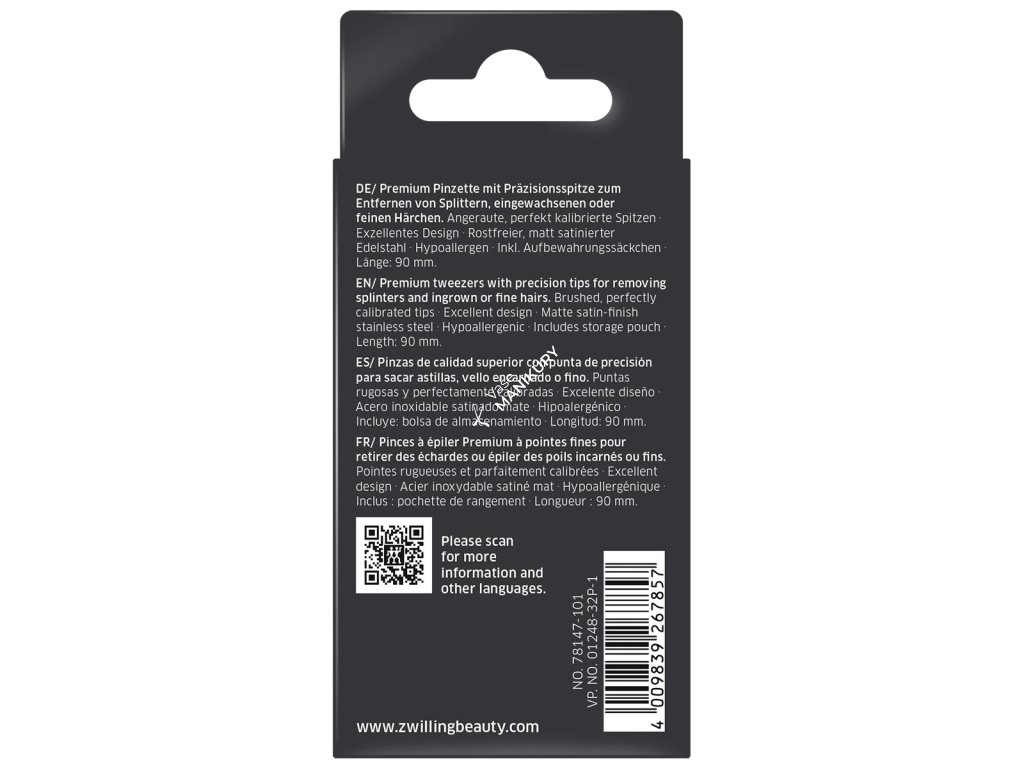 Prémiová špicatá pinzeta ZWILLING TWINOX na presné odstraňovanie triesok, zarastených alebo jemných chĺpkov.